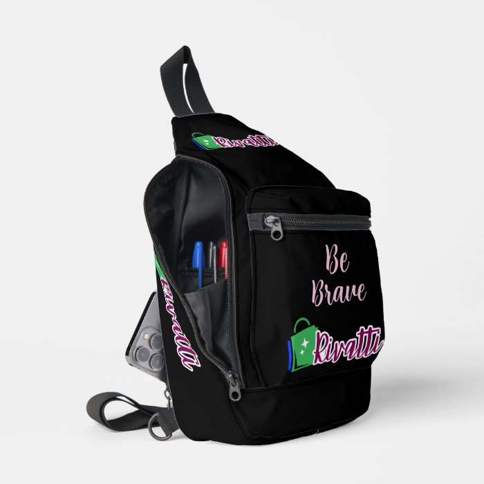 Rivatti Black Elegant Script Be Brave Sling Bag | Multi-Compartment Tech, Travel And Hike Bag