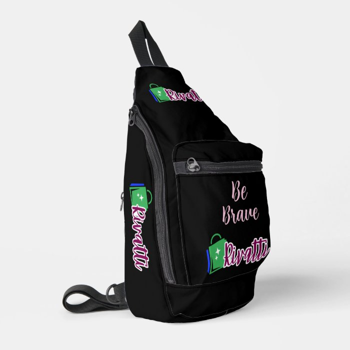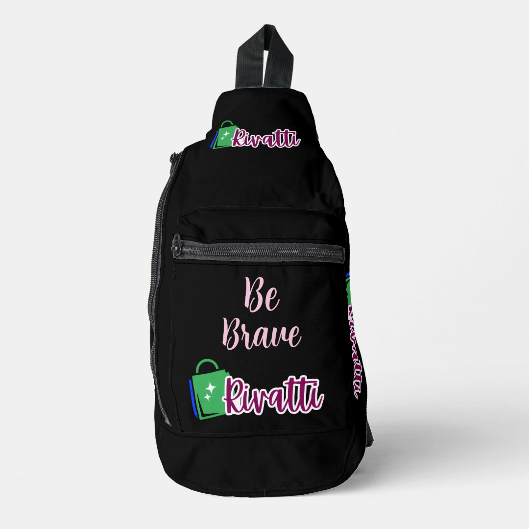Rivatti Black Elegant Script Be Brave Sling Bag | Multi-Compartment Tech, Travel And Hike Bag